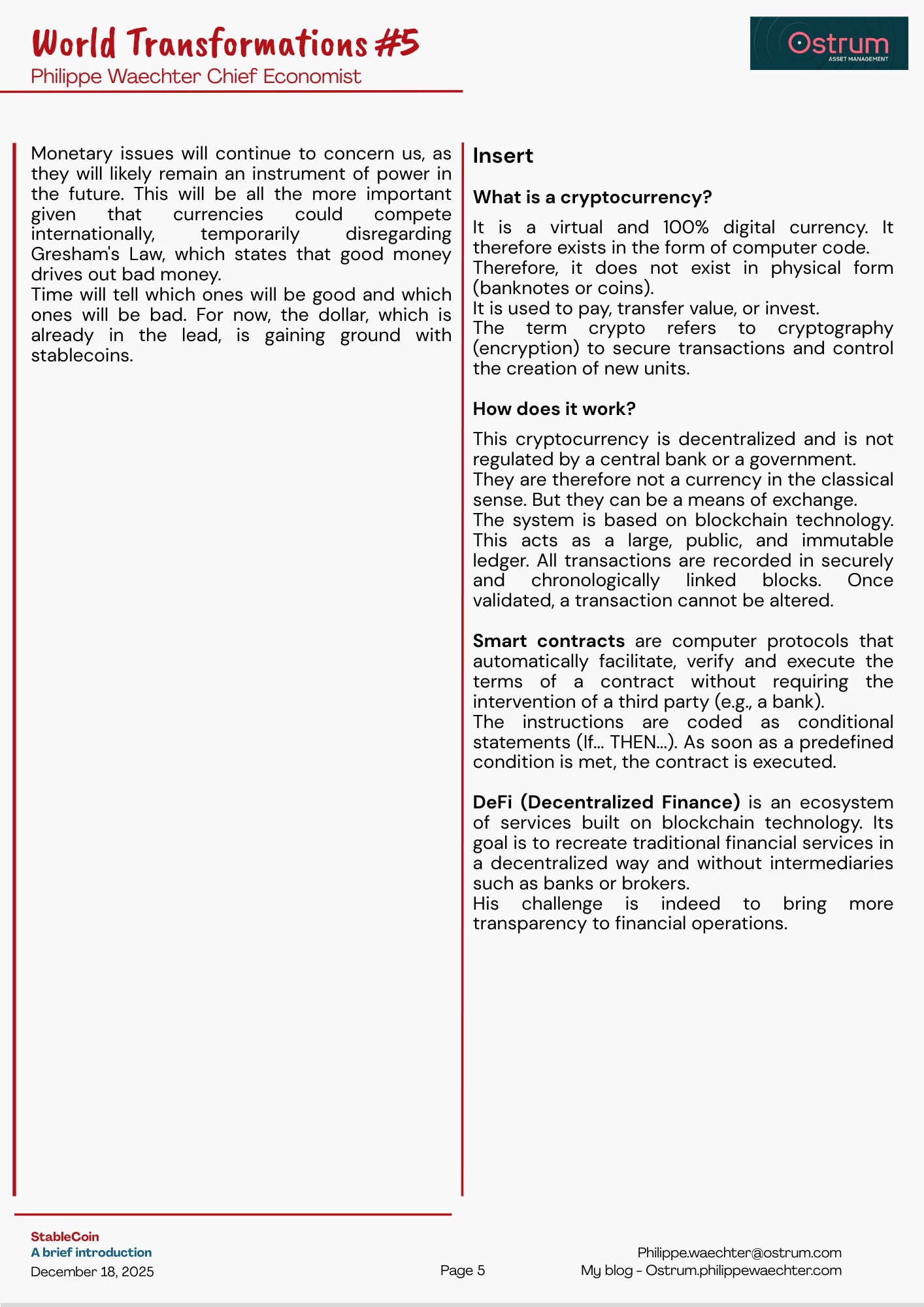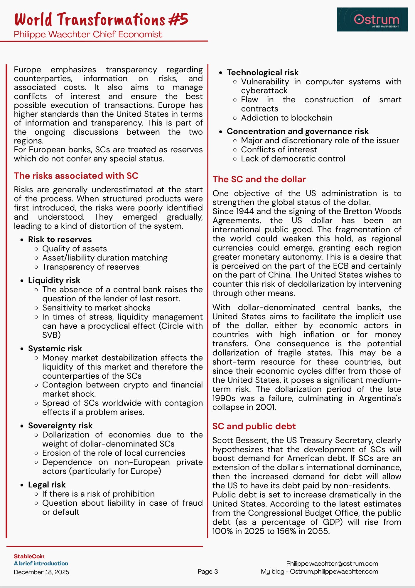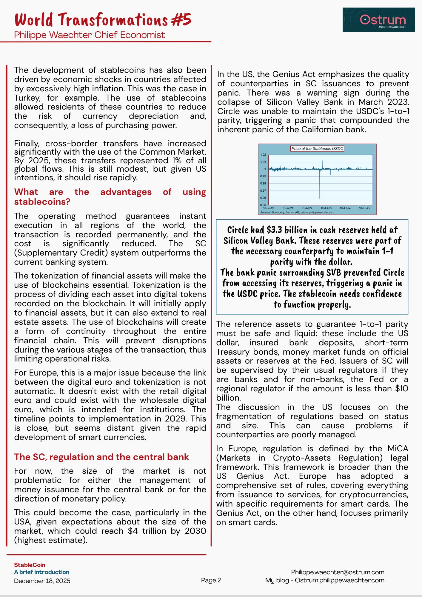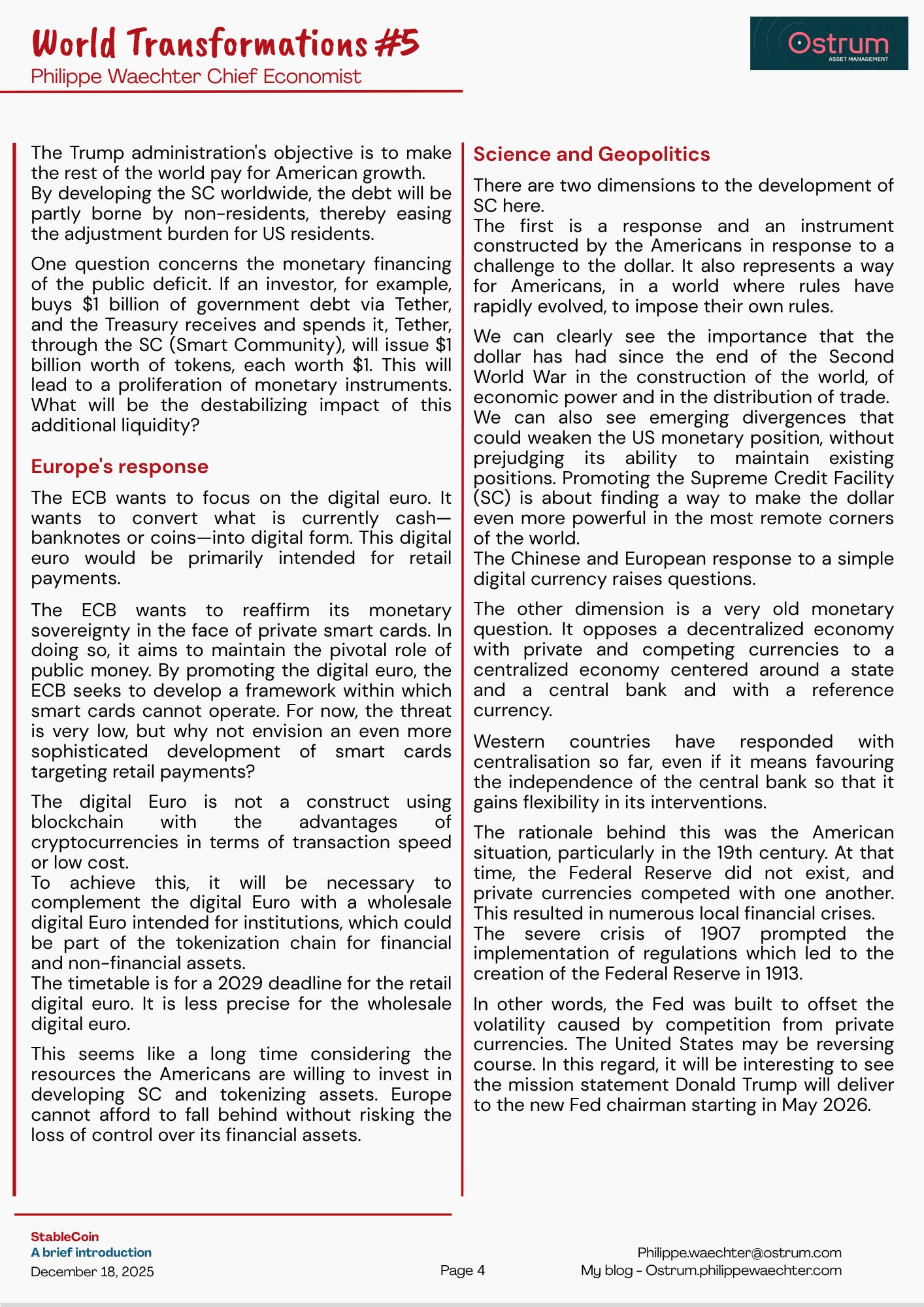 Currencies are at the heart of these disruptions. They will evolve rapidly, their scope will change. This has already begun with the Stablecoin backed by the US authorities. But the story won’t end with this new asset.