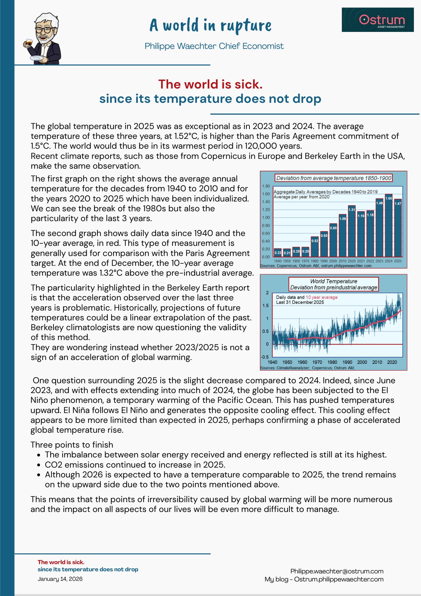 The global temperature in 2025 was as exceptional as in 2023 and 2024. The average temperature of these three years, at 1.52°C, is higher than the Paris Agreement commitment of 1.5°C. The world would thus be in its warmest period in 120,000 years.