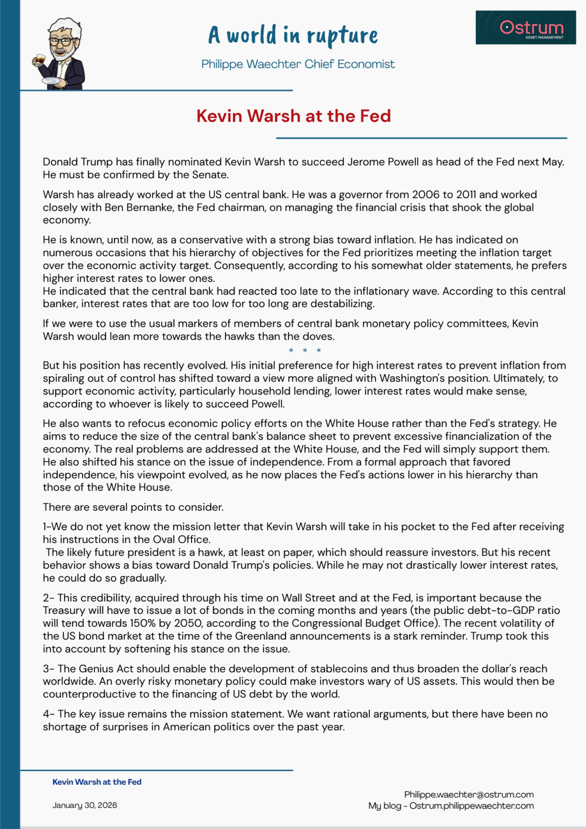 1-We do not yet know the mission letter that Kevin Warsh will take in his pocket to the Fed after receiving his instructions in the Oval Office.