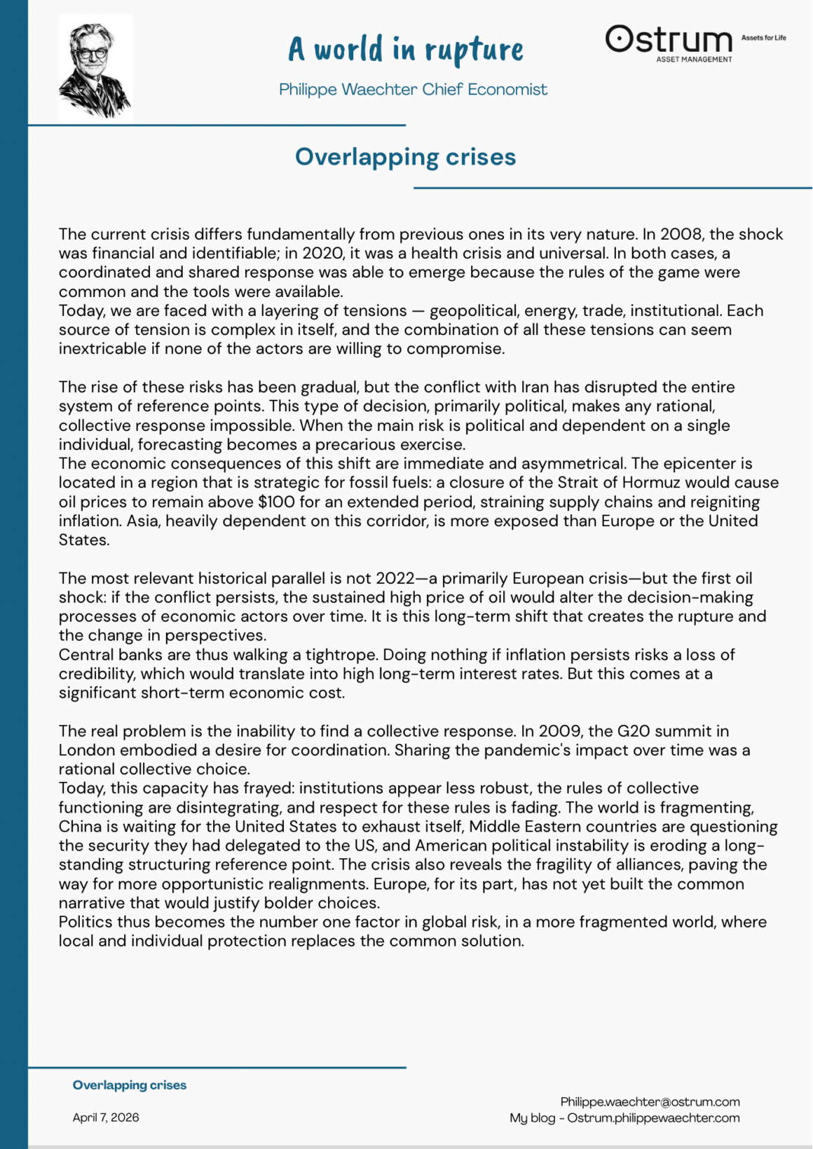 The rise of these risks has been gradual, but the conflict with Iran has disrupted the entire system of reference points. This type of decision, primarily political, makes any rational, collective response impossible. When the main risk is political and dependent on a single individual, forecasting becomes a precarious exercise.