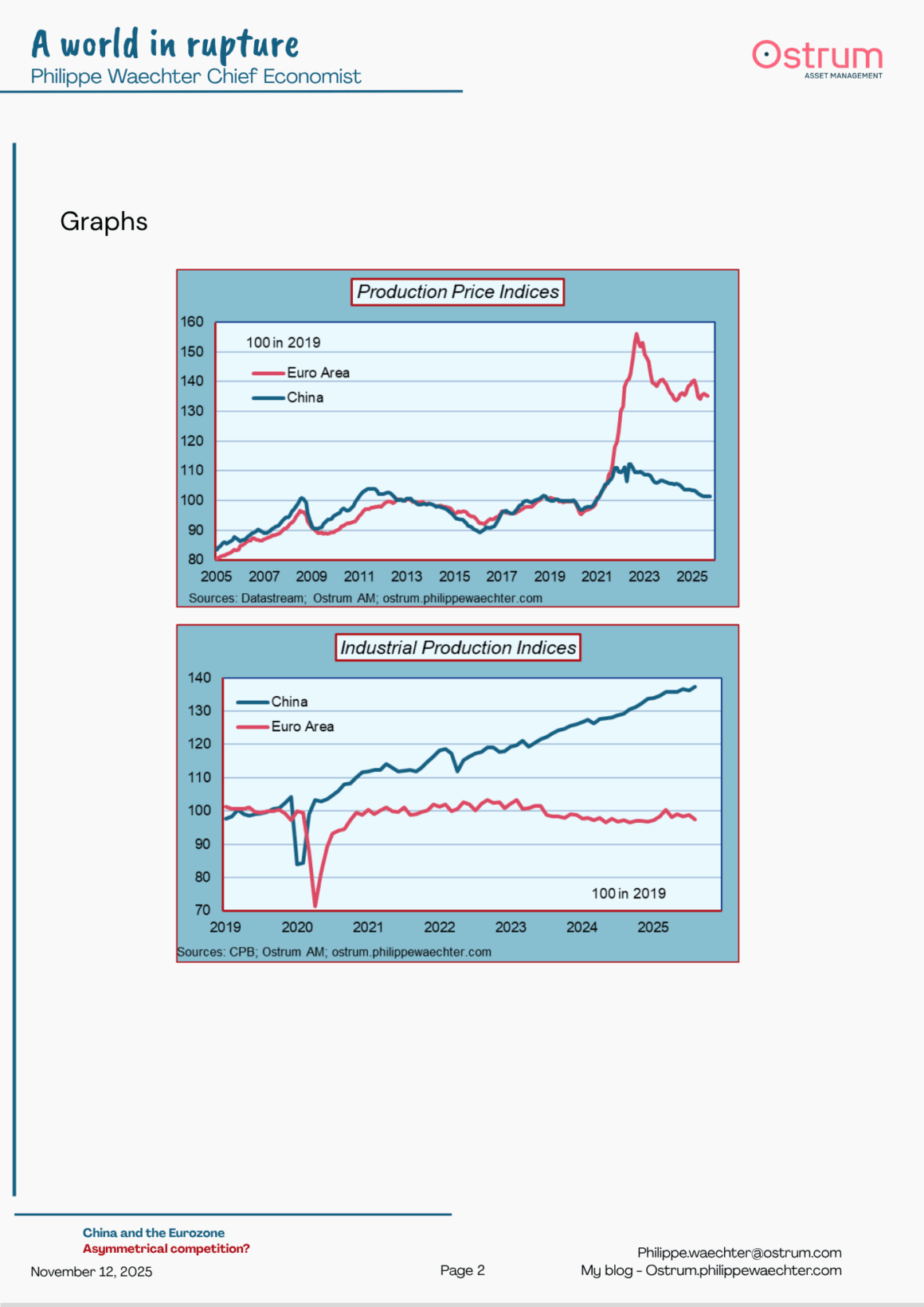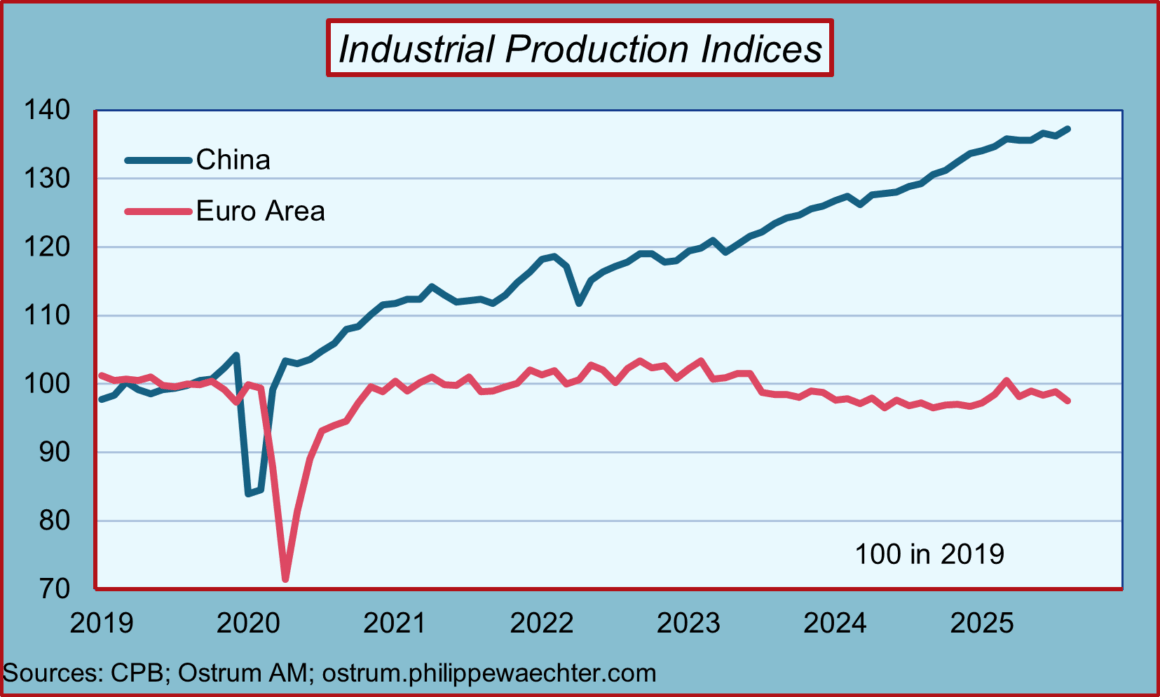 5- The Eurozone is also penalized by the lack of a rebound in its industrial production since the pandemic. This translates into less product renewal and more limited innovation. At the same time, the industrial production index in China has risen sharply.